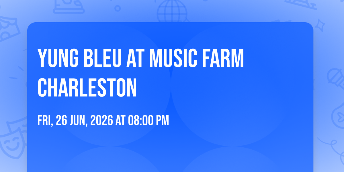 🌟 Be part of history at Yung Bleu at Music Farm Charleston, an extraordinary gathering that will captivate your imagination! 🏛️ The prestigious Music Farm Charleston in Charleston, SC sets the stage for an unforgettable experience on June 26th, 2026 at 08:00 PM. ✨ They are bringing together the finest elements of entertainment and innovation to create moments that will take your breath away. From the moment you arrive, you'll be immersed in an atmosphere of wonder and excitement. 🎯 This carefully planned event ensures every guest experiences something truly special. 🎊 Early booking is recommended for this must-attend event of the season!