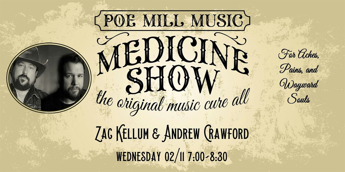 Join Zac Kellum and Andrew Crawford for a night of compelling live music driven by honest lyrics, rich melodies, and stripped-down arrangements. Expect a dynamic set that highlights thoughtful songwriting and genuine connection with the audience.