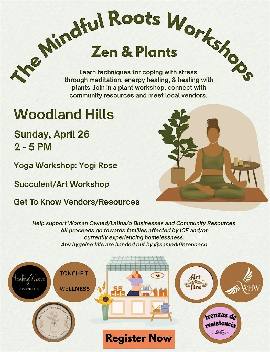 Welcome to TheMindlfulRootsWorkshops (TMRW) happening in Woodland Hills area on April 26th, 2026 at 2:00 PM (Pacific Time). Join us for a day filled with mindfulness activities and self-care practices. This event is perfect for those looking to reconnect with nature and nurture their well-being.
