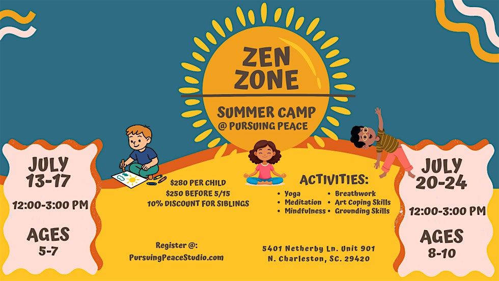 - Register at: https://www.pursuingpeacestudio.com/event-details/zen-zone-summer-camp-5-7-years-old