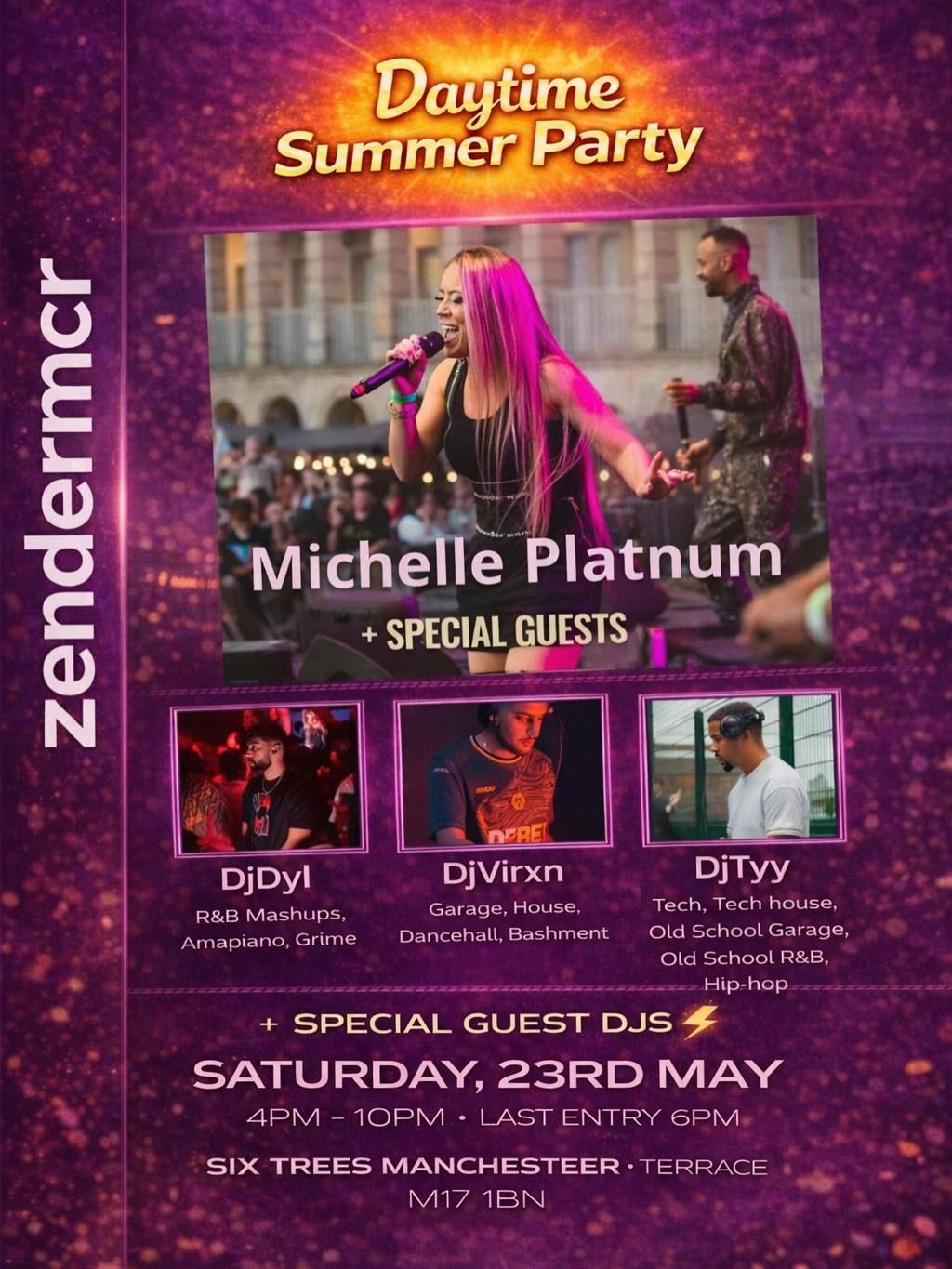 ZenderMCR Daytime Summer Party is taking over Six Trees Manchester (Terrace) on Saturday 23rd May, 4PM–10PM — and it’s set to be one of those “you had to be there” days.