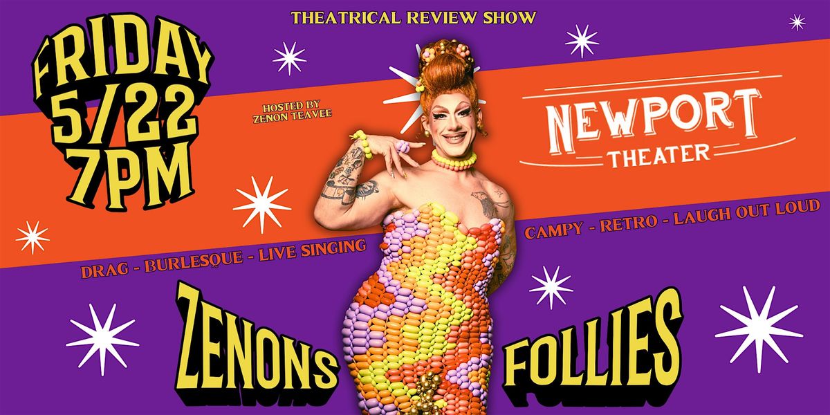 Hosted by Zenon TeaVee, This night of Follies will be sure to help escape the Hum Drum Horrors of every day life and will let you LAUGH OUT LOUD with your friends as you get dazzled by the Talents of Honey Bee Rose, Aria B Cassadine, Izzy Fierce, and a set from rising Cabaret star Sarah Blattner.