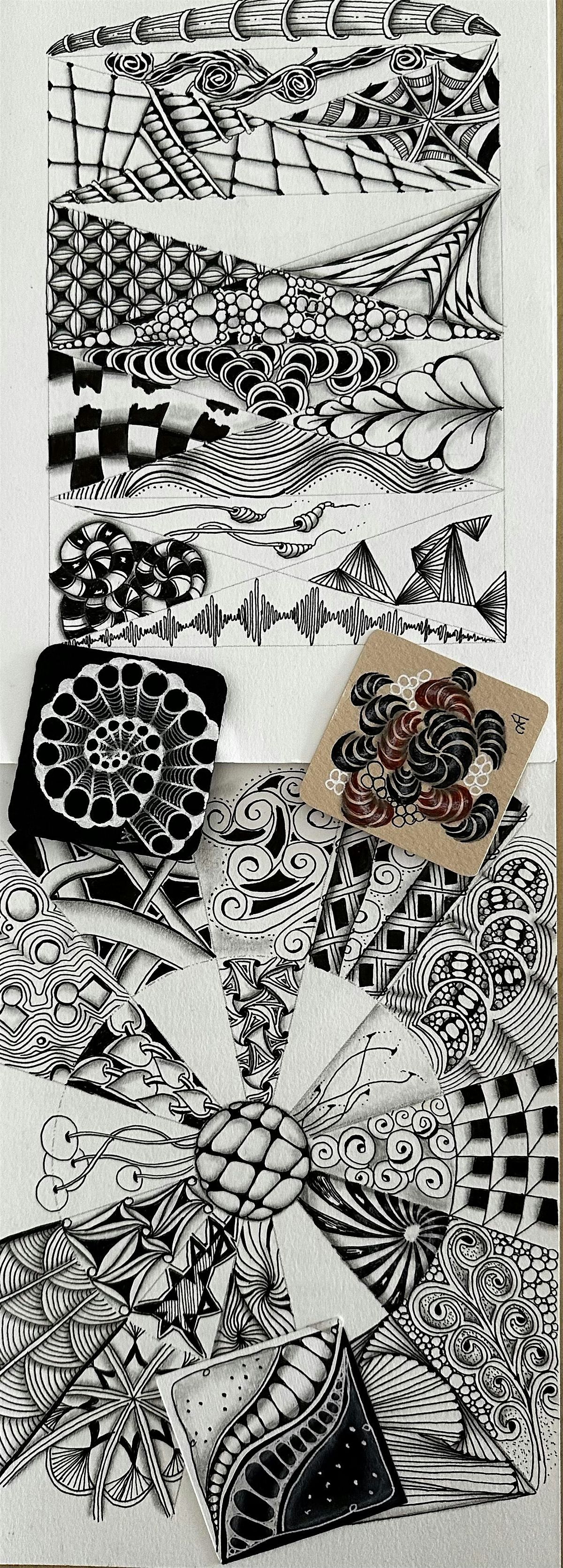 Zentangle reminds us: “There are no mistakes, only opportunities,” and “Anything is possible, one stroke at a time.”