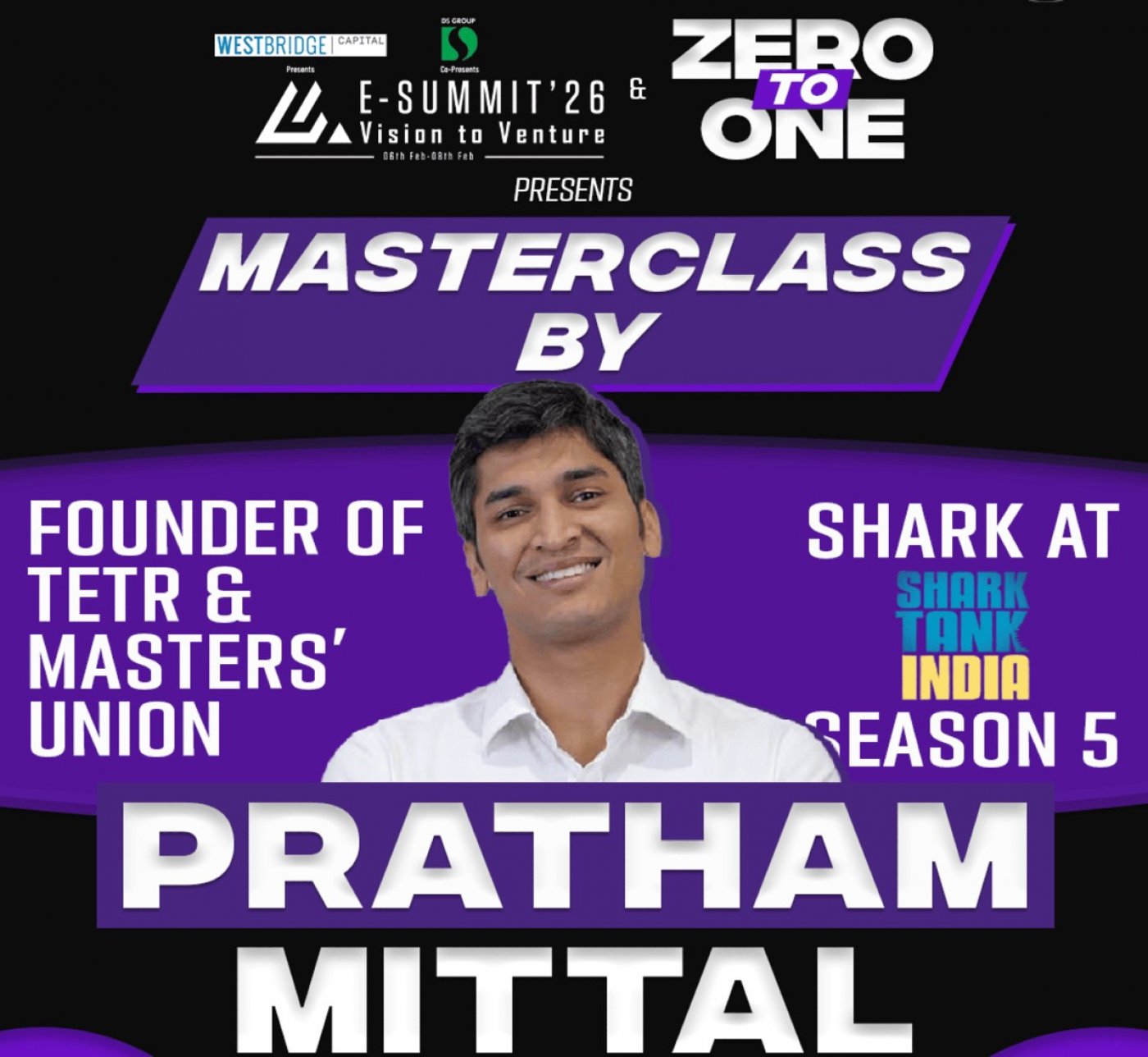 The session features Pratham Mittal, Shark Tank India (Season 5) and Founder & CEO of Masters’ Union and Tetr, who will share first-hand insights from his journey of building institutions and companies from the ground up.