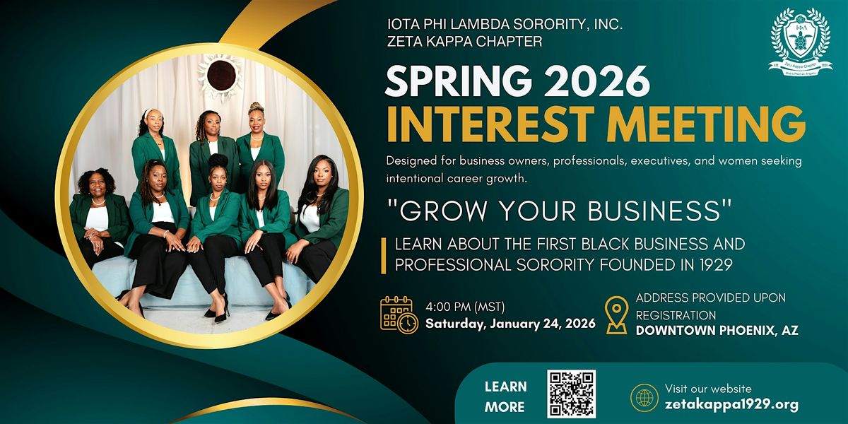 The Iota Phi Lambda Sorority, Inc., Zeta Kappa Chapter invites business owners, professionals, executives, and women seeking intentional career growth to attend our Spring 2026 Interest Meeting.