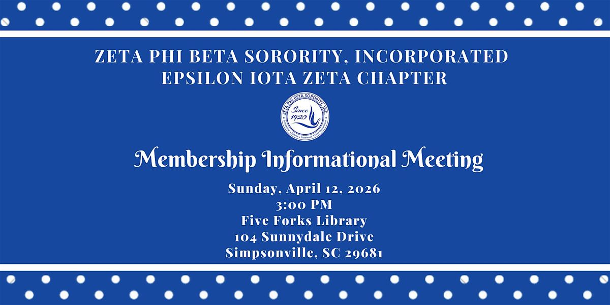 Join us at the Five Forks Branch Library for an Informational Interest Meeting! It's a great chance to learn more, ask questions, and connect with others who share your interests. Mark your calendar for April 12, 2026 at 3:00 PM (Eastern Time). We’re looking forward to seeing you there!