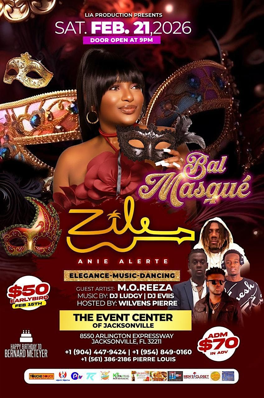 Get ready for a night to remember at 8550 Arlington Expy on February 21, 2026 at 10:00 PM (Eastern Time)! Join us for an unforgettable masquerade ball with ZILE { ANIE ALERTE } bringing the house down with their live performance.