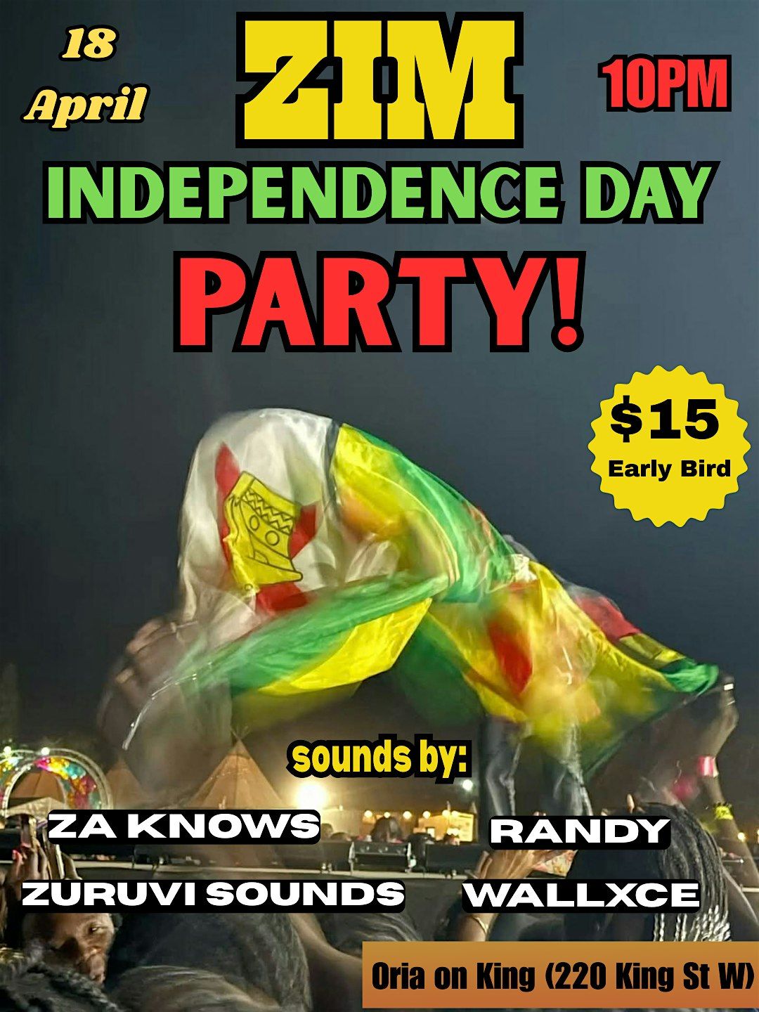 Come through and join us for the best celebration of Zimbabwe's Independence Day In Toronto! The vibes will be top-tier with some of the best DJs in the city spinning the decks all night long! This will be the place to be if you are looking for the best time to enjoy life and celebrate being a Zimbabwean!