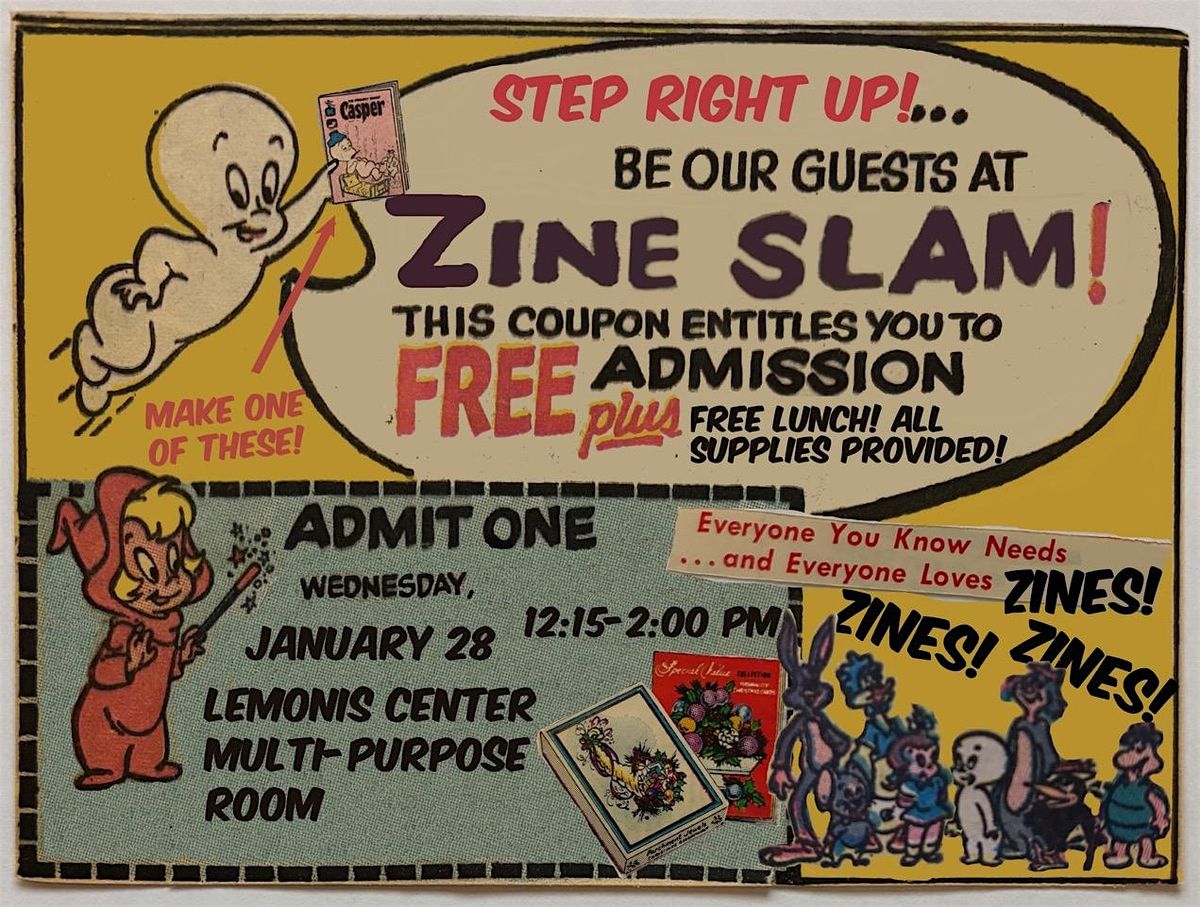 ZINE SLAM is a low-key event hosted by visiting writer and maker, Dr. Jason Luther.