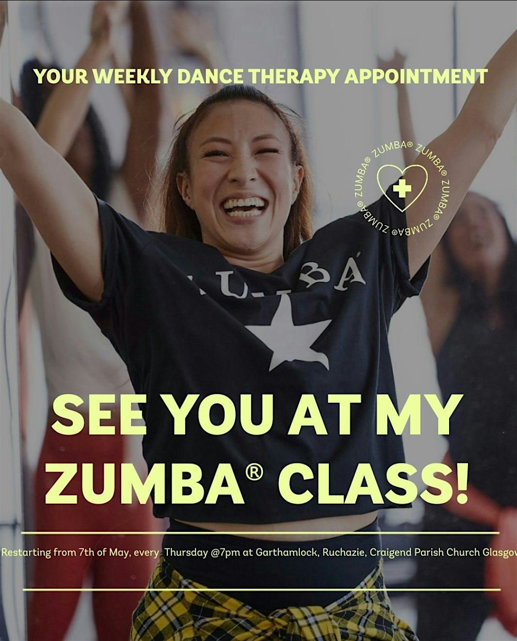 Weekly Zumba workout to hot Latino tunes, each Thursday @7pm, no judgement, no expectations, for EveryBODY as you dance with your ❤️