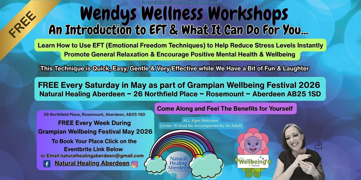 Join us at Natural Healing Aberdeen on Every Saturday in May at 10:00am - 12:00pm for a relaxed and fun session all about EFT (Emotional Freedom Techniques). Discover how this simple tapping method can help you and your loved ones reduce stress, boost wellbeing, and feel more balanced. Perfect for beginners curious about natural healing and where to begin. Bring your questions and an open mind!
