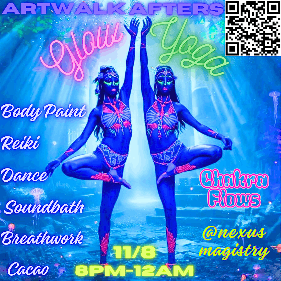 Come flow, glow, and heal with us — the perfect way to end your Art Walk night surrounded by music, movement, and a community of light.